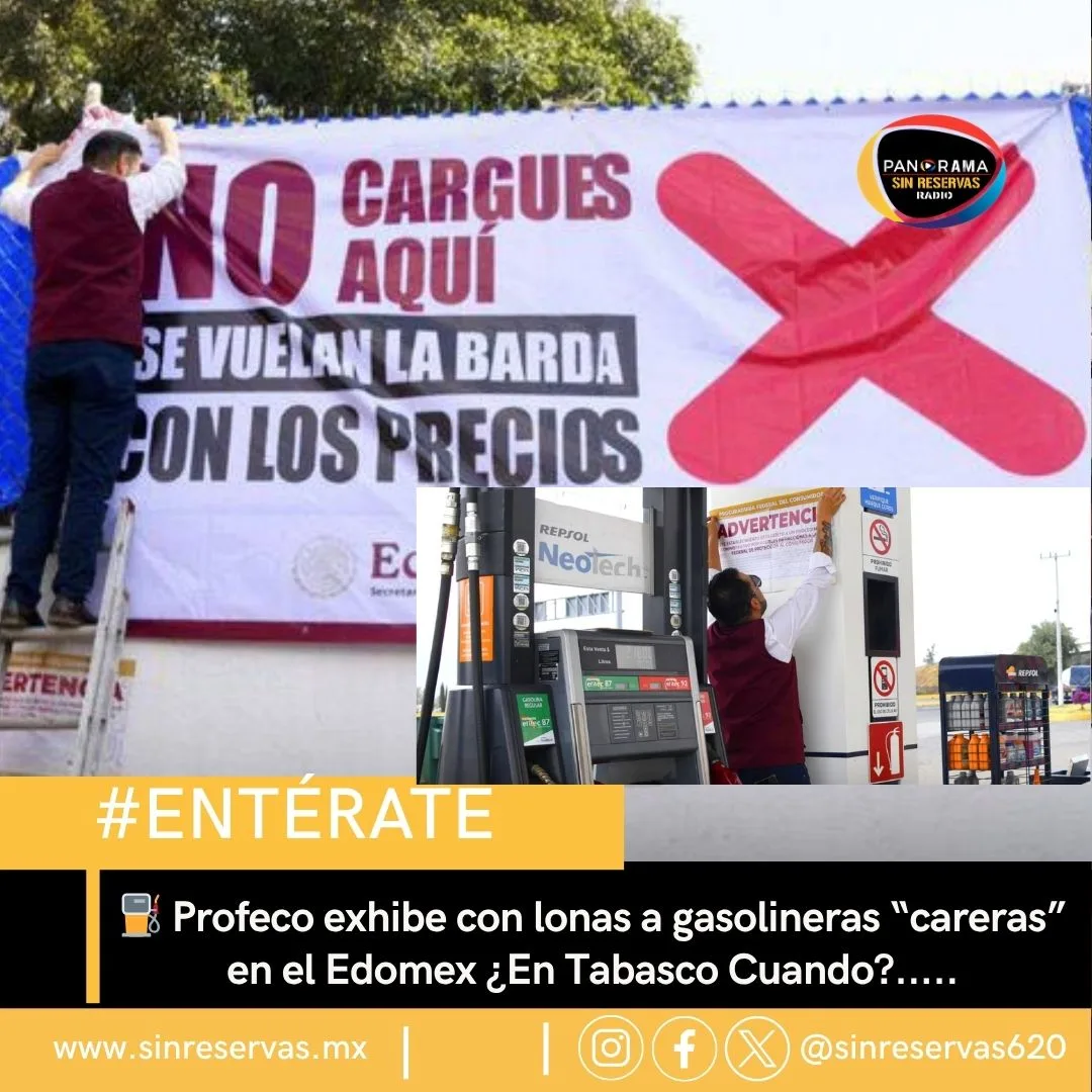 ⛽ Profeco exhibe con lonas a gasolineras “careras” en el Edomex