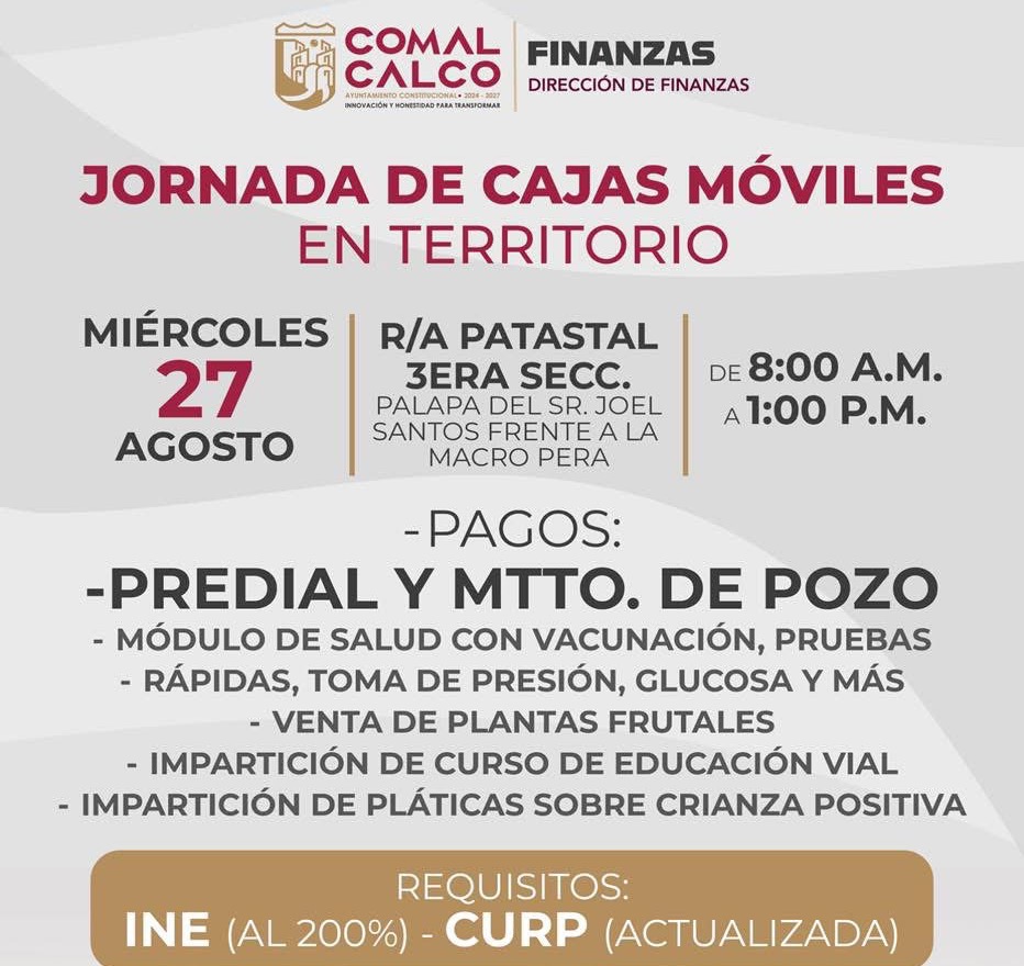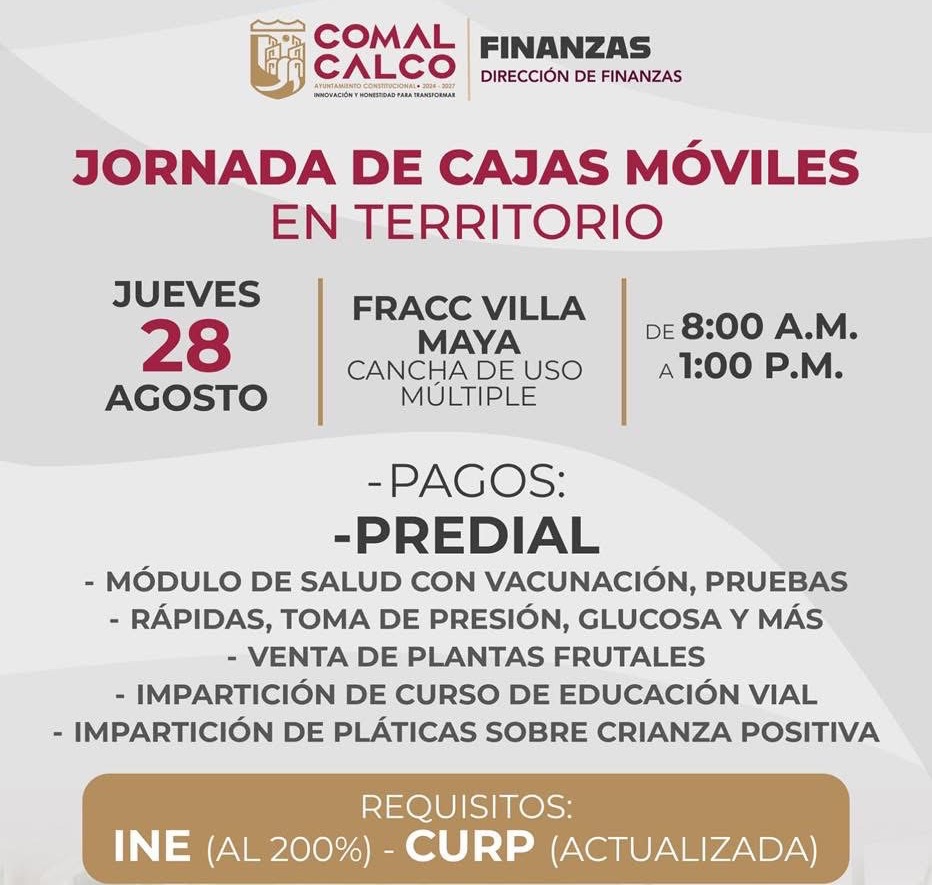 Esta semana continuarán las Jornadas de Cajas Móviles en Territorio, acercando los servicios de recaudación a las comunidades para que realicen de manera cómoda sus pagos de predial y mantenimiento de pozo.
