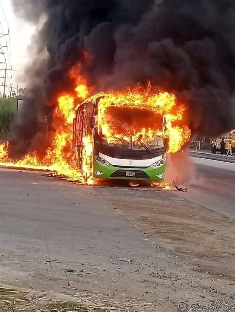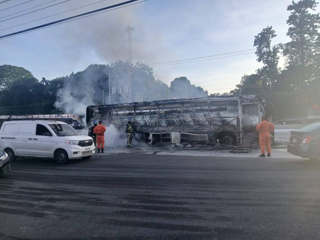 🔥 Voraz incendio consume autobús de transporte colectivo en carretera Panamericana