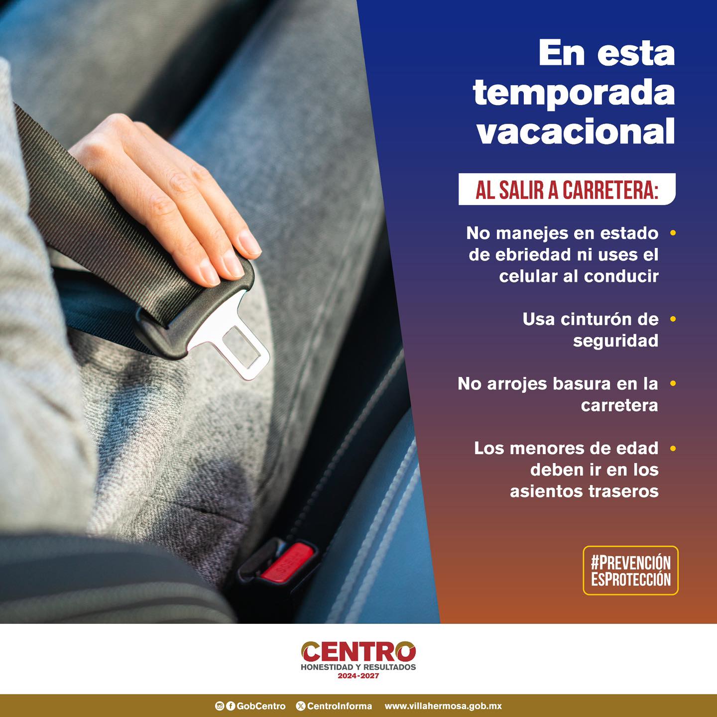 #PrevenciónEsProtección #HonestidadYResultados #VacacionesSeguras #ConduceConCuidado