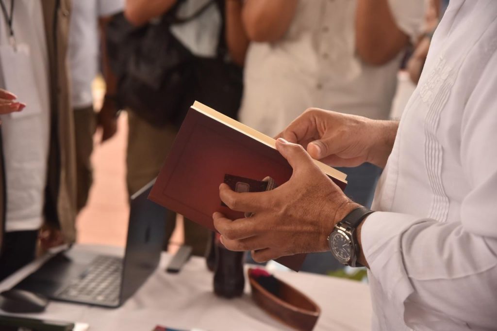 “¿Cuántos libros te quedan?”, le preguntó mientras hojeaba el volumen editado por el Gobierno del Estado. “Todavía tenemos más”, dijo la funcionaria. “Dale uno aquí, por favor, a Gaspar (Díaz Falcón)”, pidió May Rodríguez. De inmediato, recibió su copia el presidente municipal. “El autor es de Macuspana”, acotó la subsecretaria. A lo que el mandatario agregó: “Y de Tabasco”.