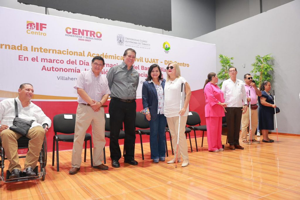 En el marco del Día Internacional del Bastón Blanco: Autonomía, Inclusión y Conciencia Social, la alcaldesa Yolanda Osuna Huerta realizó la donación de 21 bastones a personas con discapacidad visual, durante la Jornada Internacional Académica y Civil UJAT-DIF Centro.