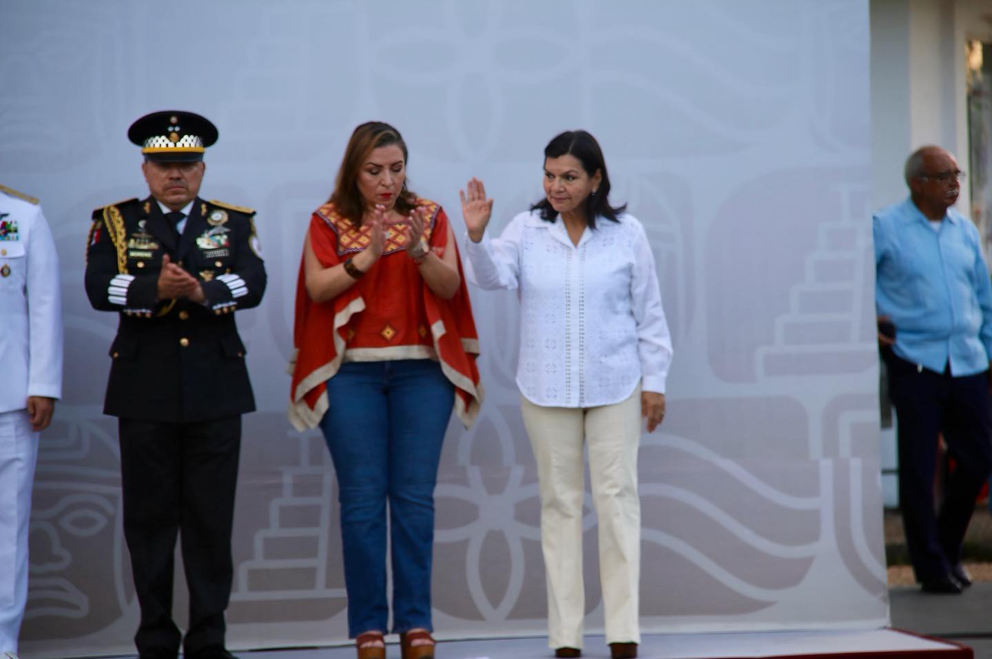 La alcaldesa Yolanda Osuna Huerta asistió este jueves al Acto Cívico en Conmemoración del 115 Aniversario de la Revolución Mexicana, presidido por el gobernador Javier May Rodríguez en la Plaza de Armas.