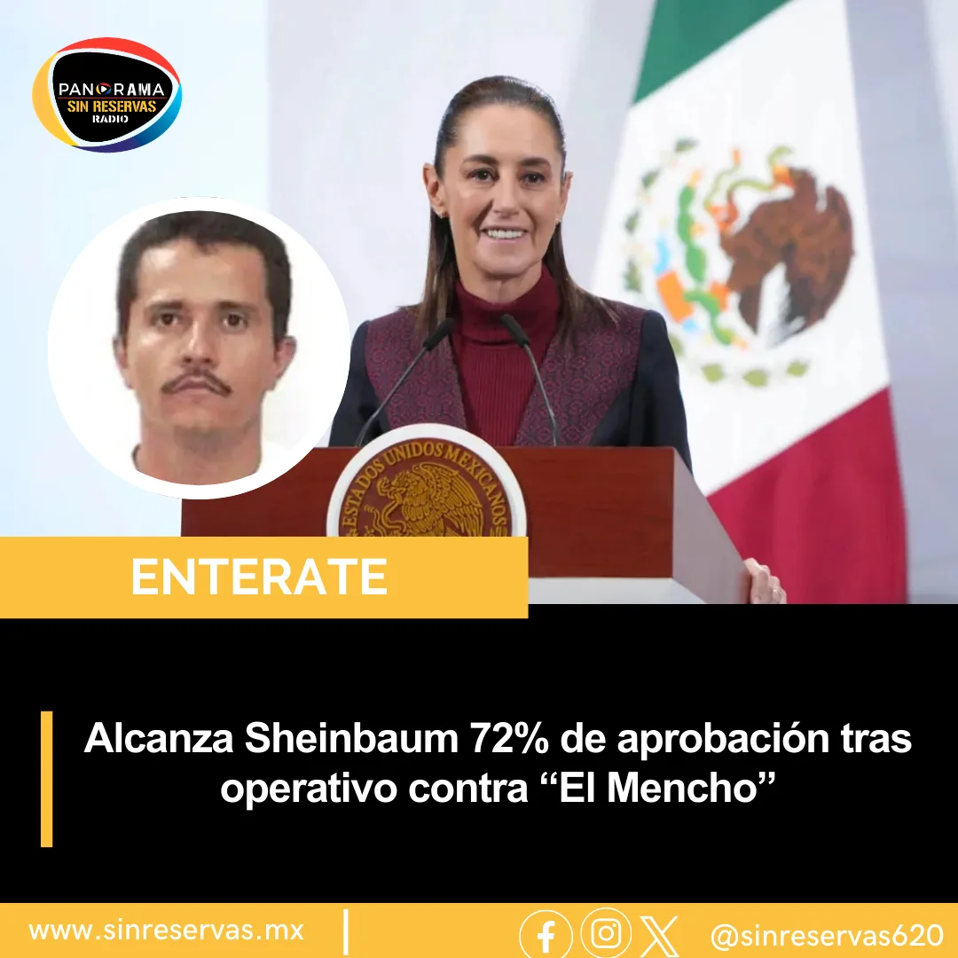 Alcanza Sheinbaum 72% de aprobación tras operativo contra “El Mencho”