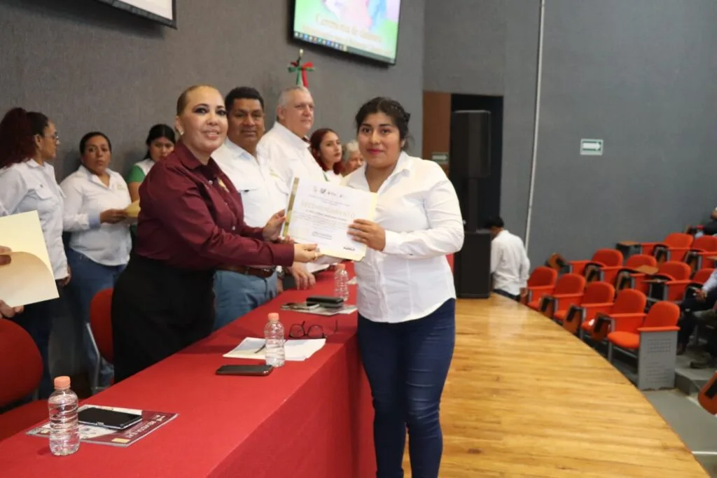 La titular del IEAT entregó reconocimiento al rector de la universidad, Alterio Ramos Pérez Pérez, por su participación en el programa Alfabetizar para Transformar, al cual se sumaron los 63 alumnos de la Licenciatura de Lengua y Cultura, los cuales participaron con ética hacia sus comunidades, siendo ejemplo claro de que la vocación social universitaria puede transformar realidades, expresó el rector.