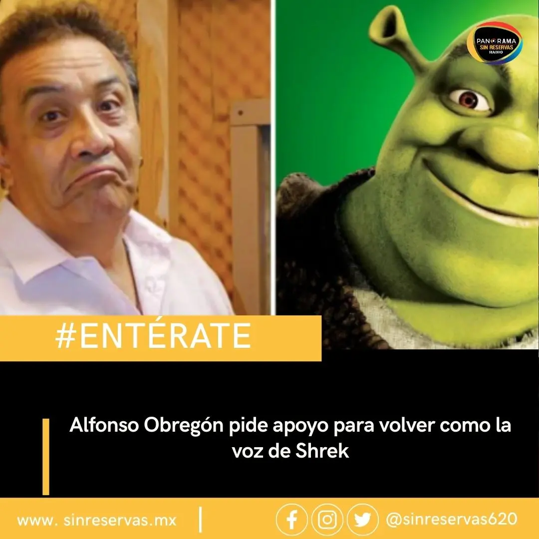 El actor de doblaje Alfonso Obregón, reconocido por dar voz a Shrek en el doblaje latino, solicitó apoyo en redes sociales para regresar en la quinta entrega de la saga.