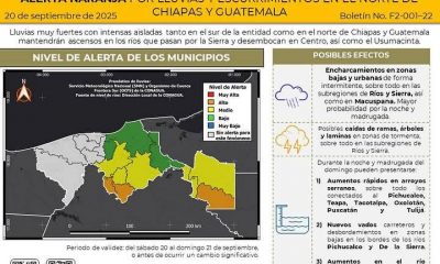 - Lluvias: Se esperan lloviznas dispersas, principalmente durante la noche, en las regiones de la Chontalpa, Centro y Sierra.