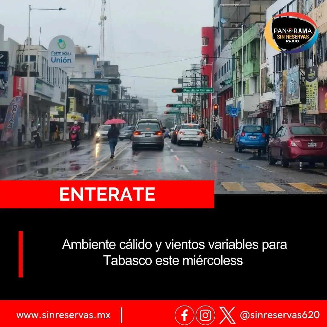 Ambiente cálido y vientos variables para Tabasco este miércoles