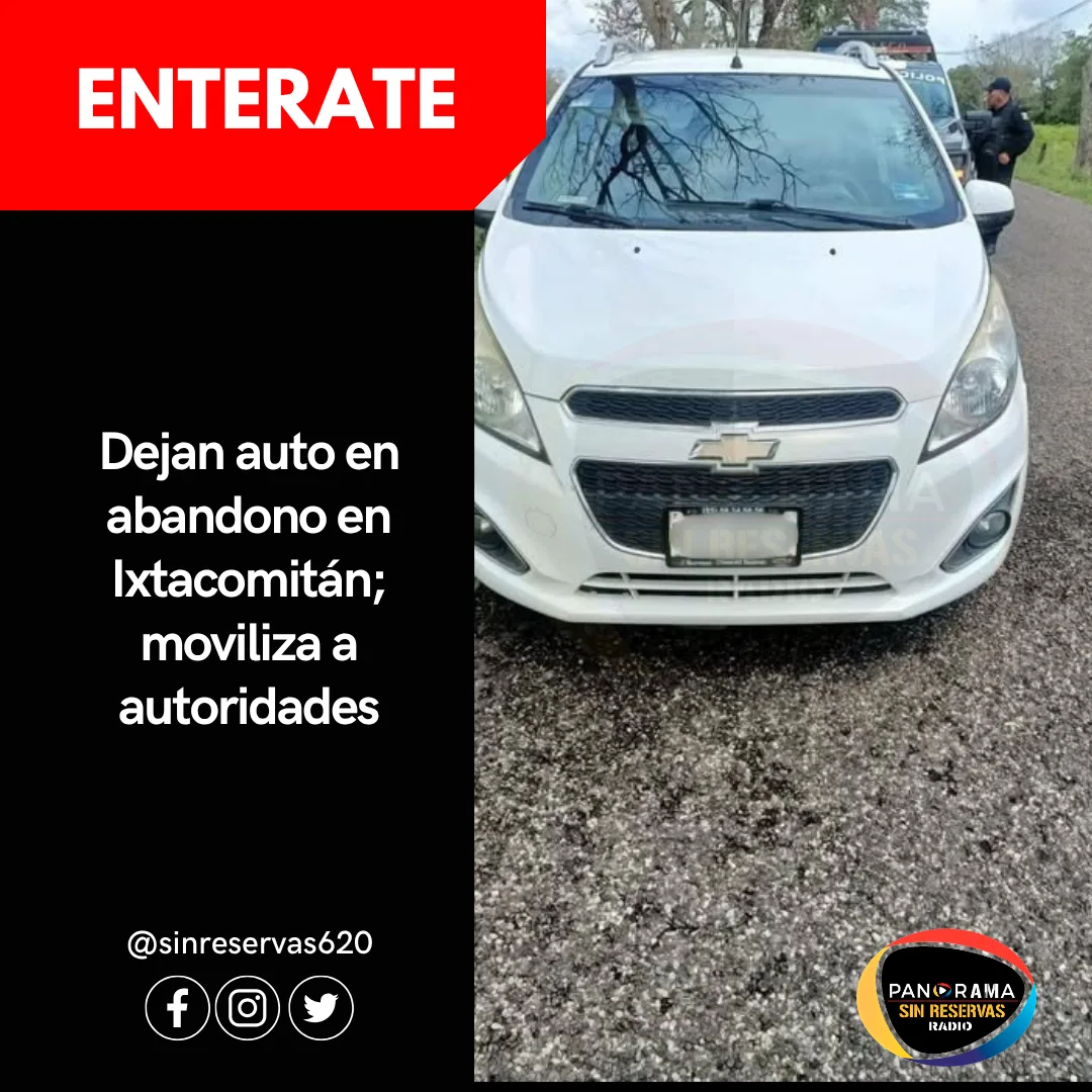 Dejan auto en abandono en Ixtacomitán; moviliza a autoridades