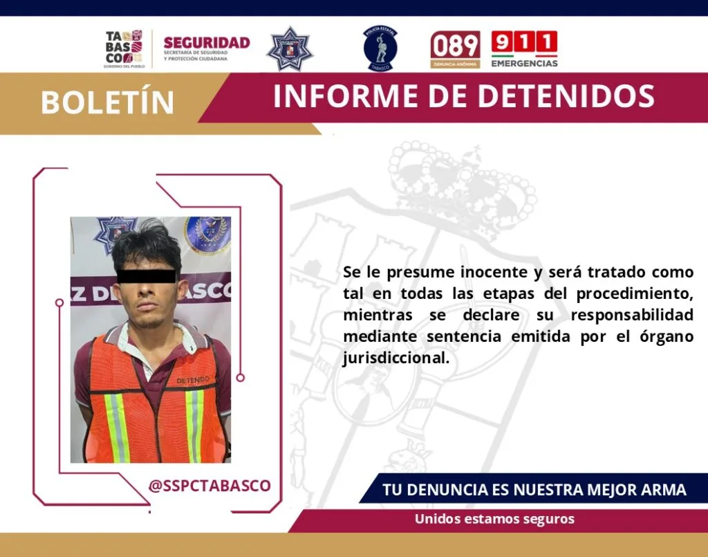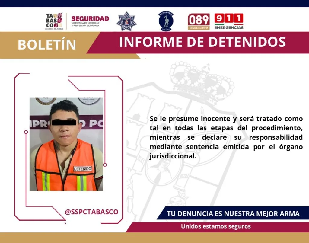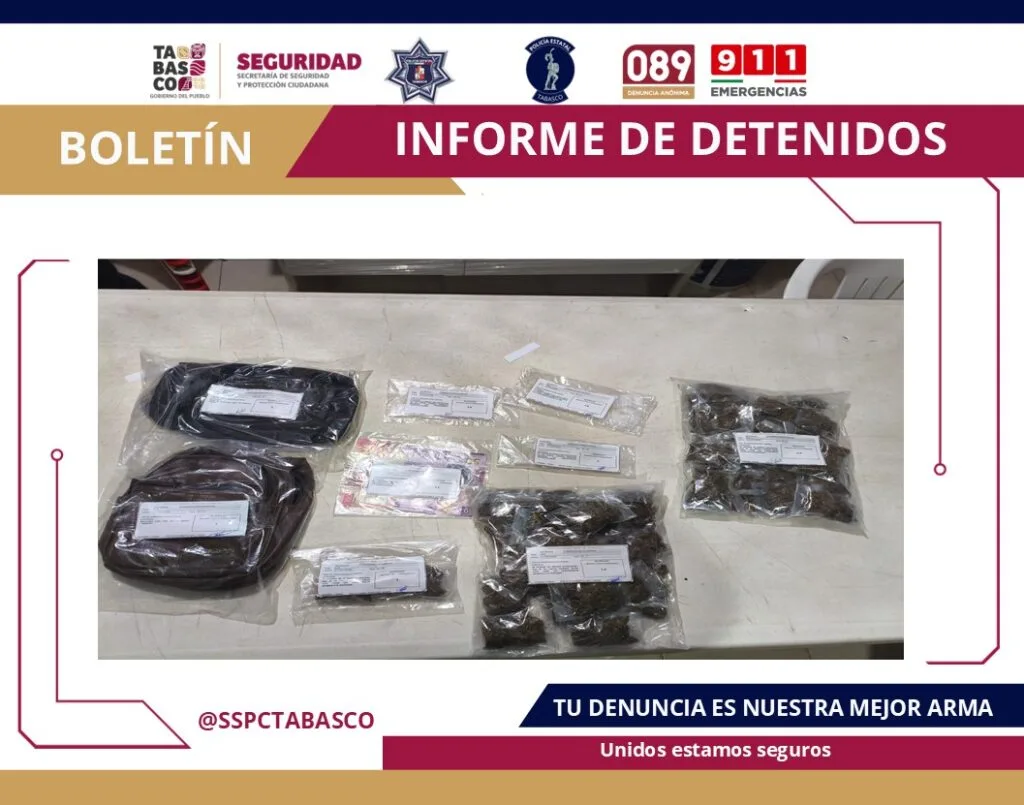 Como parte de las acciones de seguridad implementadas en la Estrategia Antiextorsión y el Plan de Contención del Delito, la Secretaría de Seguridad y Protección Ciudadana (SSPC), en coordinación con la Fuerza Interinstitucional de Reacción Táctica (FIRT) Olmeca, logró el aseguramiento de tres masculinos, presuntos culpables de delitos contra la Ley General de Salud.