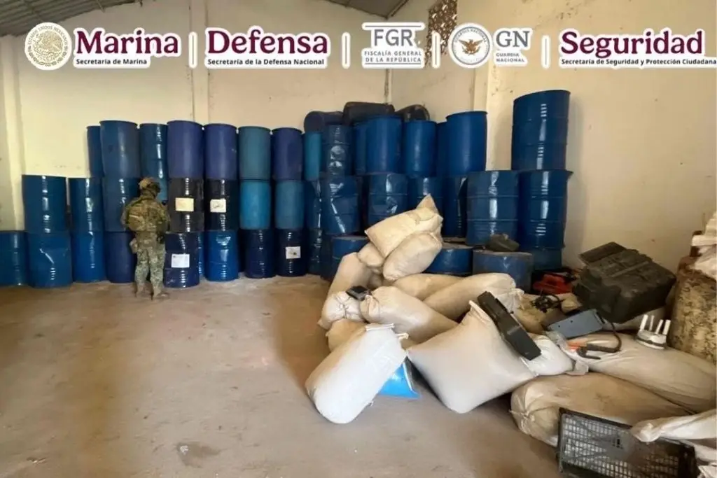 Autoridades federales aseguraron e inhabilitaron una bodega con casi 25 mil litros y más de 12 toneladas de sustancias químicas, así como un campamento clandestino en el estado de Guerrero, los cuales eran utilizados para la elaboración de drogas sintéticas.
