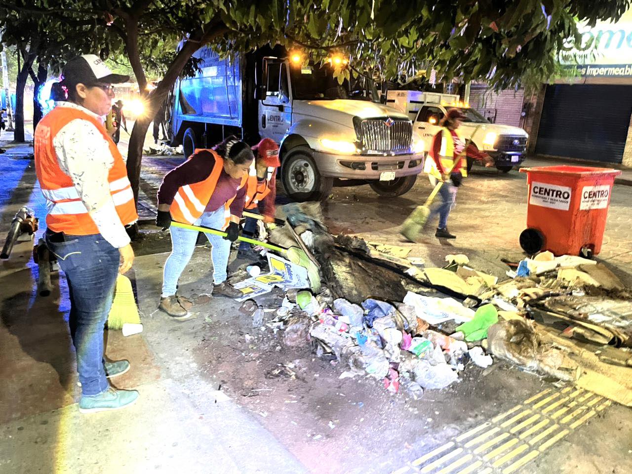 Desde las primeras horas de este jueves, personal de distintas áreas municipales llevó a cabo un operativo de limpieza y recolección de residuos sólidos en los alrededores del Mercado Pino Suárez, como parte de las acciones permanentes para la recuperación y ordenamiento de los espacios públicos.