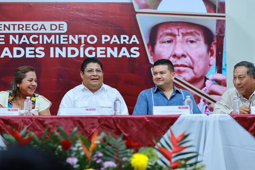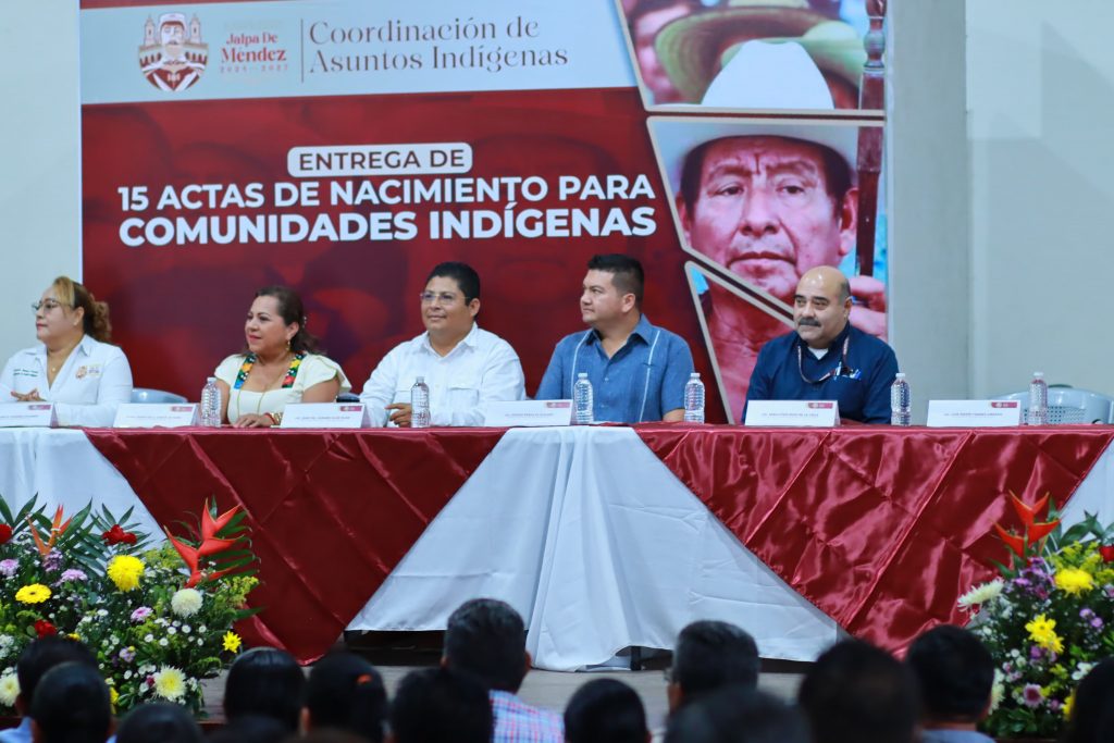 En un acto histórico, el alcalde Ovidio Peralta Suárez asistió este viernes al evento en que autoridades del Instituto Nacional de Pueblos Indígenas (INPI), entregaron 16 actas de nacimiento a igual número de comunidades originarias de Jalpa de Méndez y Comalcalco.