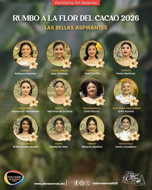 Las aspirantes al certamen Flor del Cacao se encuentran listas para vivir la algarabía y el ambiente festivo de la Feria Comalcalco 2026, uno de los eventos más representativos del municipio.