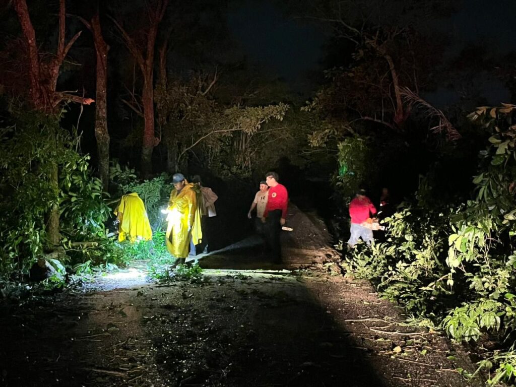 Entre las acciones destaca el retiro de un árbol de teca en Teapa que obstruía un carril de la carretera hacia la ranchería Galeana, restableciéndose la circulación vehicular de manera segura.