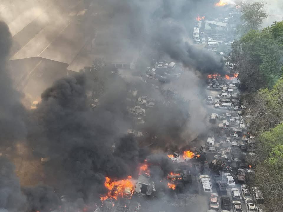 Personal de Protección Civil Tabasco y Bomberos Centro trabajan intensamente para controlar un fuerte incendio de pastizal a la altura de Pyasur, el cual ya se ha extendido hacia el área de Grúas Olmeca y representa un riesgo para una gasolinera cercana.