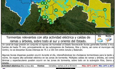 La presencia de un canal de baja presión, junto con la entrada de humedad al territorio tabasqueño, propiciará precipitaciones de fuertes a muy fuertes, con acumulados...