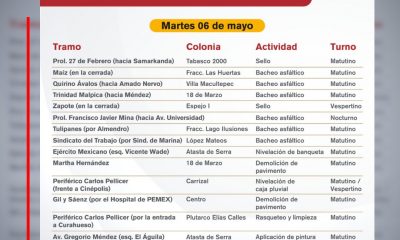 El Ayuntamiento de Centro informó que este martes se llevarán a cabo trabajos de mantenimiento en diversas vialidades del municipio, por lo que se recomienda a...