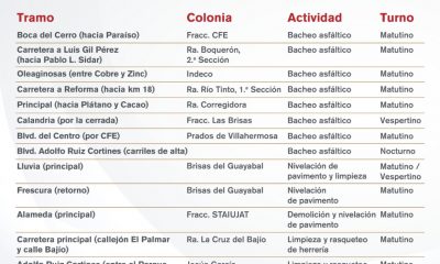 El Ayuntamiento de Centro dio a conocer las acciones de mantenimiento que se llevarán a cabo en distintas vialidades este día. Estas labores buscan mejorar las...