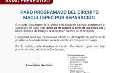 El Sistema de Agua y Saneamiento (SAS) de Centro informa que, debido a trabajos de reparación en la línea de conducción, el servicio de agua será...