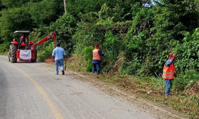 Personal del Ayuntamiento de Centro realiza labores de chapeo y limpieza de maleza en la carretera de la ranchería Barrancas y Guanal Tintillo.