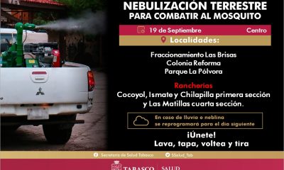 Este 19 de septiembre, la Jurisdicción Sanitaria llevará a cabo una nebulización terrestre en varias localidades del municipio para combatir al mosquito transmisor del dengue. La...