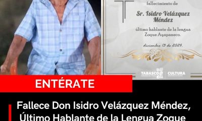 Con el fallecimiento de don Isidro Velázquez Méndez, último hablante del Zoque Ayapaneco, se extingue oficialmente una lengua ancestral de Tabasco. Velázquez Méndez, quien dedicó su...