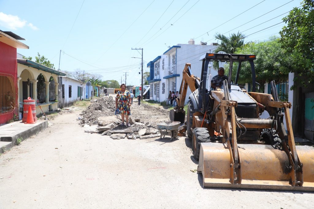 Avanza la pavimentación en la colonia Solidaridad: supervisa Mtra. María Soledad Villamayor Notario los trabajos en la calle Macuili