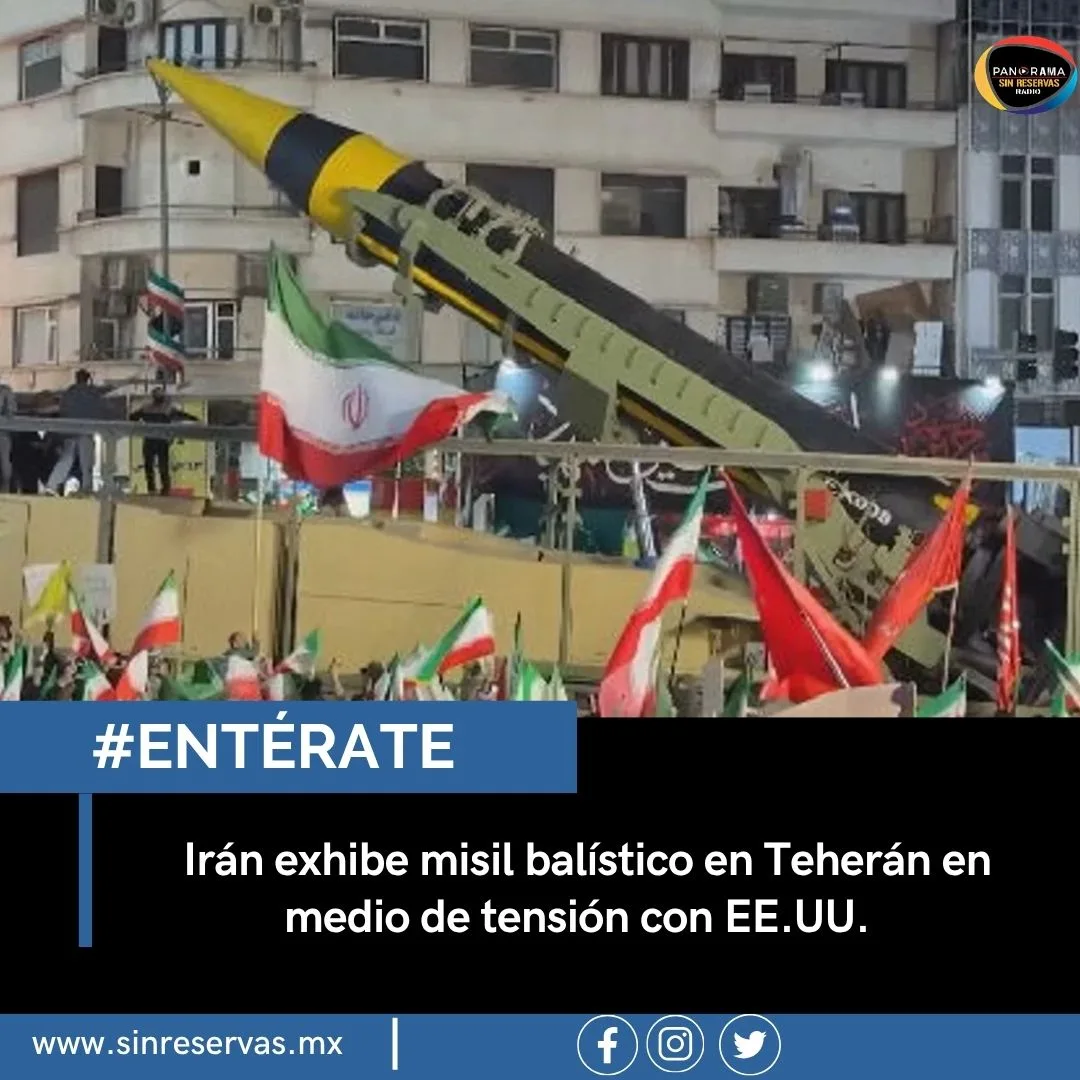 El ejército de Irán exhibió un misil balístico en la Plaza Enghelab, en Teherán, identificado por medios locales como un modelo Khorramshahr, en un contexto de creciente tensión internacional.