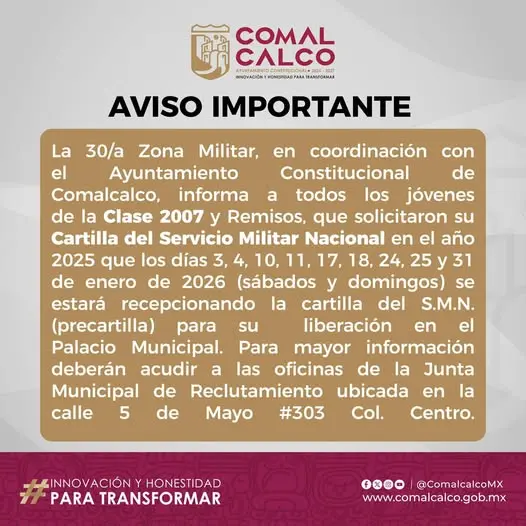 Aviso para tramite de servicio militar