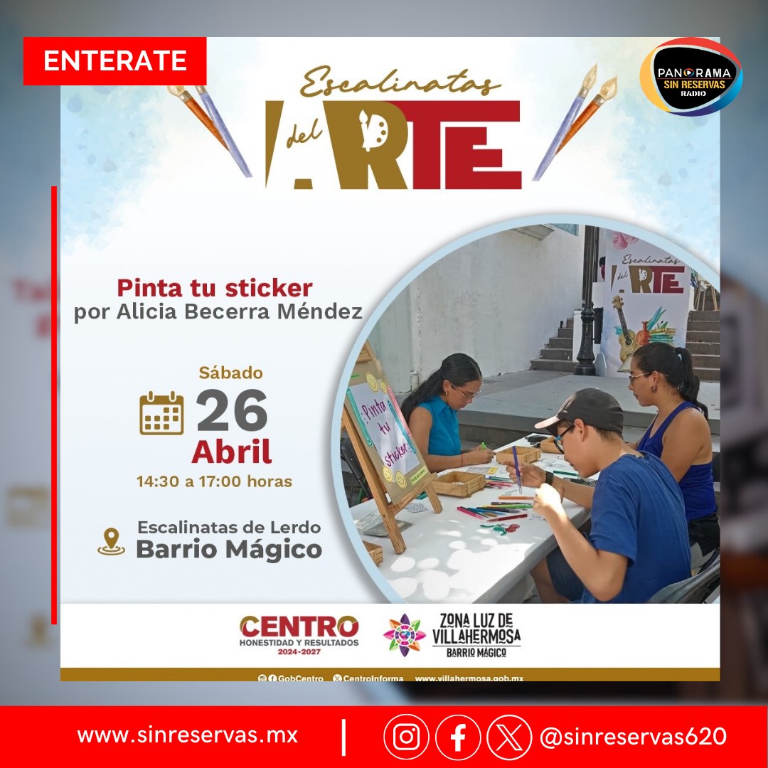 Este sábado 26 y domingo 27 de abril, no te pierdas una experiencia creativa en las “Escalinatas del Arte”. Disfruta del Taller de Grabado y Gráfica Corporal, y participa en una divertida sesión para diseñar y pintar tu propio sticker.