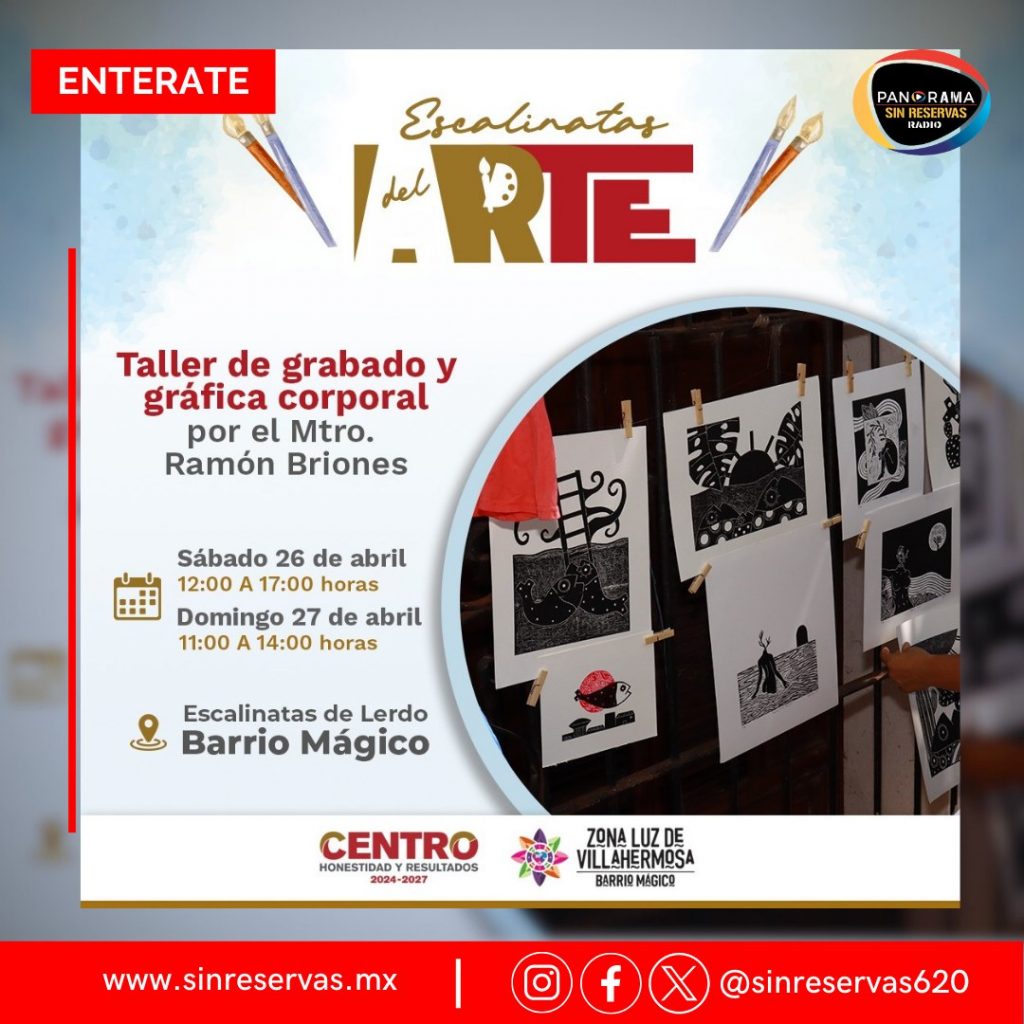 Este sábado 26 y domingo 27 de abril, no te pierdas una experiencia creativa en las “Escalinatas del Arte”. Disfruta del Taller de Grabado y Gráfica Corporal, y participa en una divertida sesión para diseñar y pintar tu propio sticker.