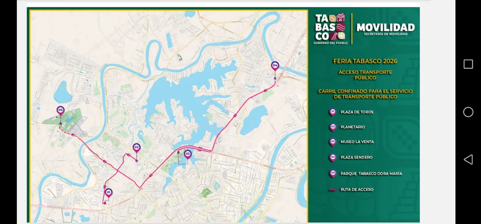 Con cinco centrales de transferencia, 16 rutas urbanas, carril de acceso confinado y sin aumento a la tarifa de transporte, el Gobierno del Pueblo garantiza un acceso seguro, fluido y ordenado para que las y los ciudadanos puedan asistir y disfrutar de todos los eventos que ofrece la Feria Tabasco 2026 a celebrarse del 1 al 10 de mayo.