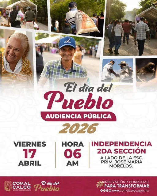 El Ayuntamiento Constitucional de Comalcalco continúa fortaleciendo la atención directa a la ciudadanía con la jornada “El Día del Pueblo”, que en esta ocasión se llevará a cabo en la ranchería Independencia 2da Sección.