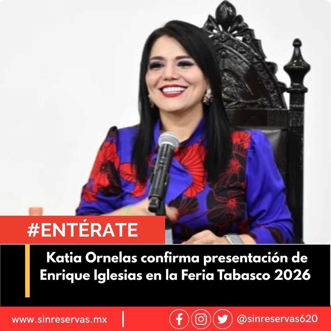 La secretaria de Desarrollo Económico y Turismo, Katia Ornelas Gil, informó que es un hecho la presentación del cantante Enrique Iglesias en la Feria Tabasco 2026.