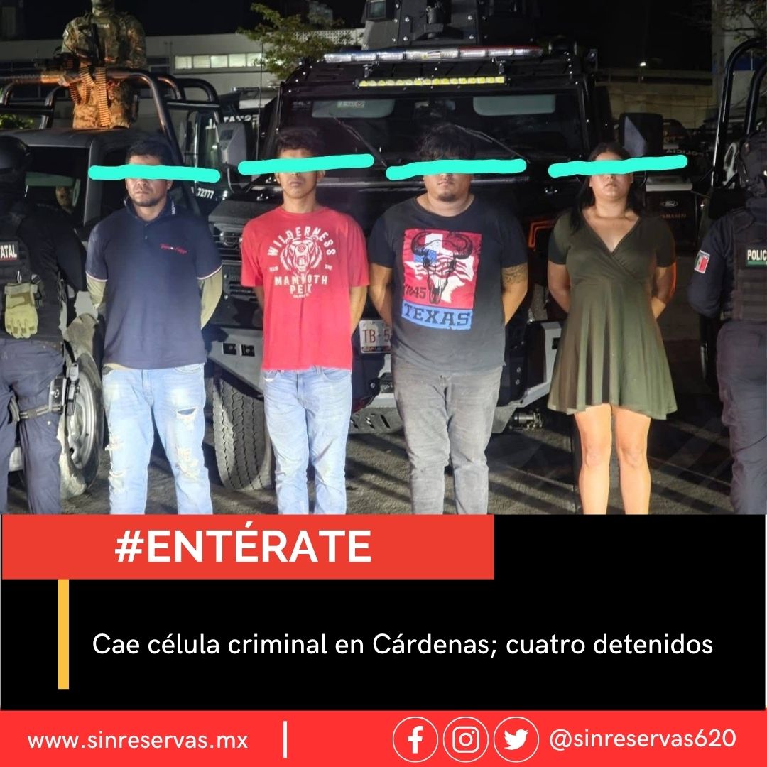 Cae célula criminal en Cardenas, fueron cuatro detenidos
