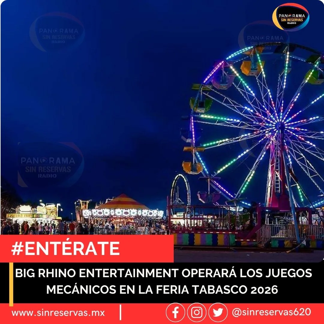 La empresa Big Rhino Entertainment será la encargada de los juegos mecánicos en la Feria Tabasco 2026, informó la secretaria de Turismo y Desarrollo Económico, Katia Ornelas Gil.