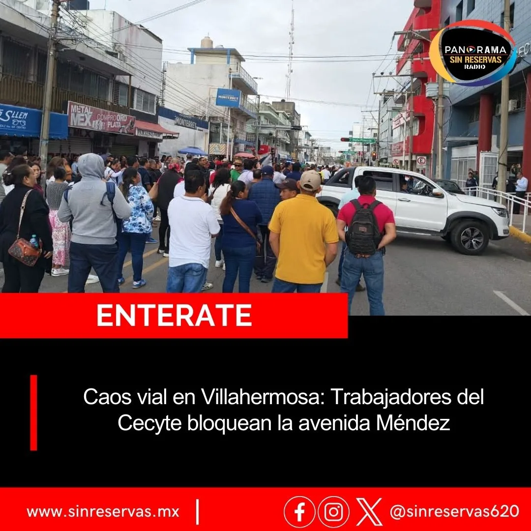 VILLAHERMOSA, TABASCO. – Una jornada de complicaciones viales se vive este lunes en la capital tabasqueña, luego de que personal perteneciente al Colegio de Estudios Científicos y Tecnológicos del Estado de Tabasco (Cecyte) cerrara la circulación sobre la avenida Gregorio Méndez Magaña.