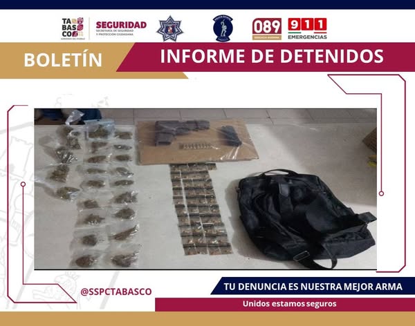 Capturan a “El Yerva” en Comalcalco; portaba droga y arma de fuego