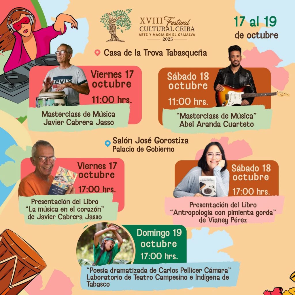 Con una amplia cartelera que invita a disfrutar del arte, tradiciones y cultura tabasqueña, el Gobierno del Pueblo a través de la Secretaría de Cultura, está listo para celebrar del 17 al 19 de octubre la edición XVIII del Festival Cultural CEIBA, con una serie de actividades completamente gratuitas, hechas para que los chicos, se adentren a nuestras raíces y los más grandes, vuelvan a sentir la magia e historia del Barrio Mágico y río Grijalva.