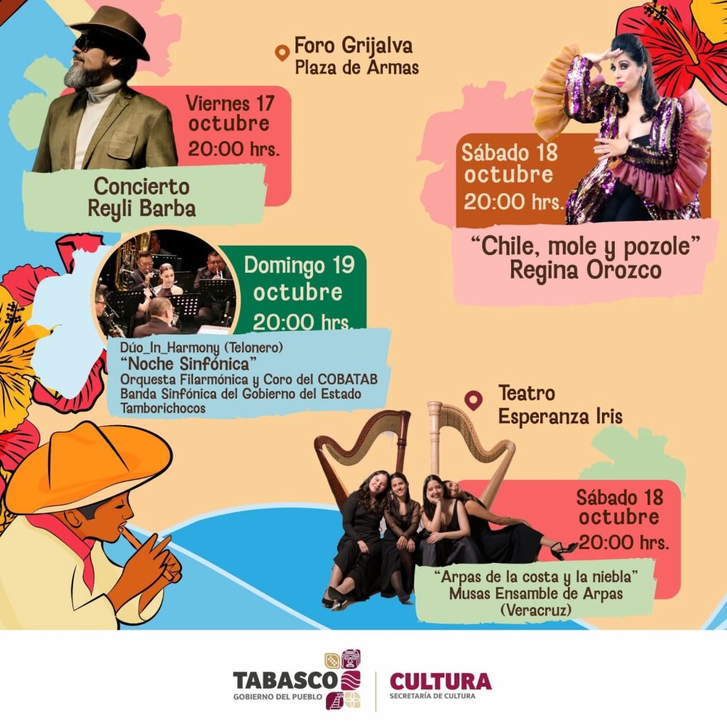 El evento que durante tres días exaltará la grandeza cultural de Tabasco, bajo el lema ‘Arte y Magia en el Grijalva’ será inaugurado por el Gobernador Javier May Rodríguez la noche del viernes 17 de octubre, en el Foro Grijalva de Plaza de Armas, espacio donde el cantante chiapaneco, Reylli Barba abrirá el telón con un concierto estelar.
