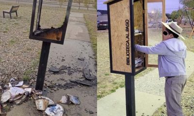 Un niño y su padre crearon una mini biblioteca en un parque para fomentar la lectura, pero su proyecto fue destruido por desconocidos que quemaron el...