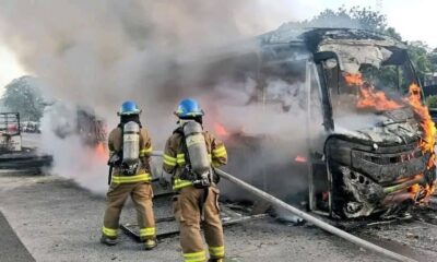 Un autobús de la ruta 201, que cubre el recorrido entre Santa Ana y San Salvador, fue consumido por las llamas la mañana de este viernes...