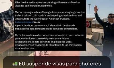 Estados Unidos anunció la suspensión inmediata de visas de trabajo para conductores de camiones comerciales extranjeros, una medida que ha generado gran polémica en el sector...