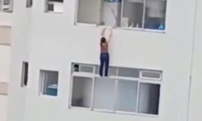 Una dramática escena se vivió en la ciudad de Guruja, Brasil, cuando una mujer quedó suspendida en el aire desde el piso 16 de un edificio...