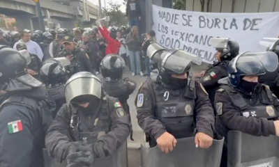 Trabajadores del Poder Judicial se manifestaron frente al Autódromo Hermanos Rodríguez, donde la policía de la Ciudad de México los “encapsuló” antes del inicio del Gran...
