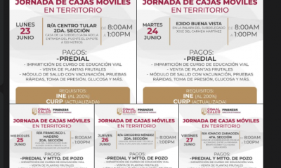 Continúan las Jornadas de Cajas Móviles en Territorio de esta semana, acercando las cajas receptoras hasta la ciudadanía para efectuar sus pagos de predial y mantenimiento...