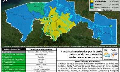 Influencia de bajas presiones mantendrán un potencial de lluvias muy fuertes de hasta 75 mm en La Sierra, Macuspana y en menor medida el municipio de...
