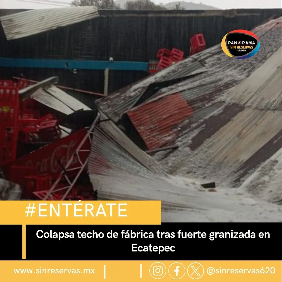 El techo de una fábrica colapsó tras una intensa granizada registrada en la colonia San Carlos, en el municipio de Ecatepec, Estado de México, generando movilización de cuerpos de emergencia.