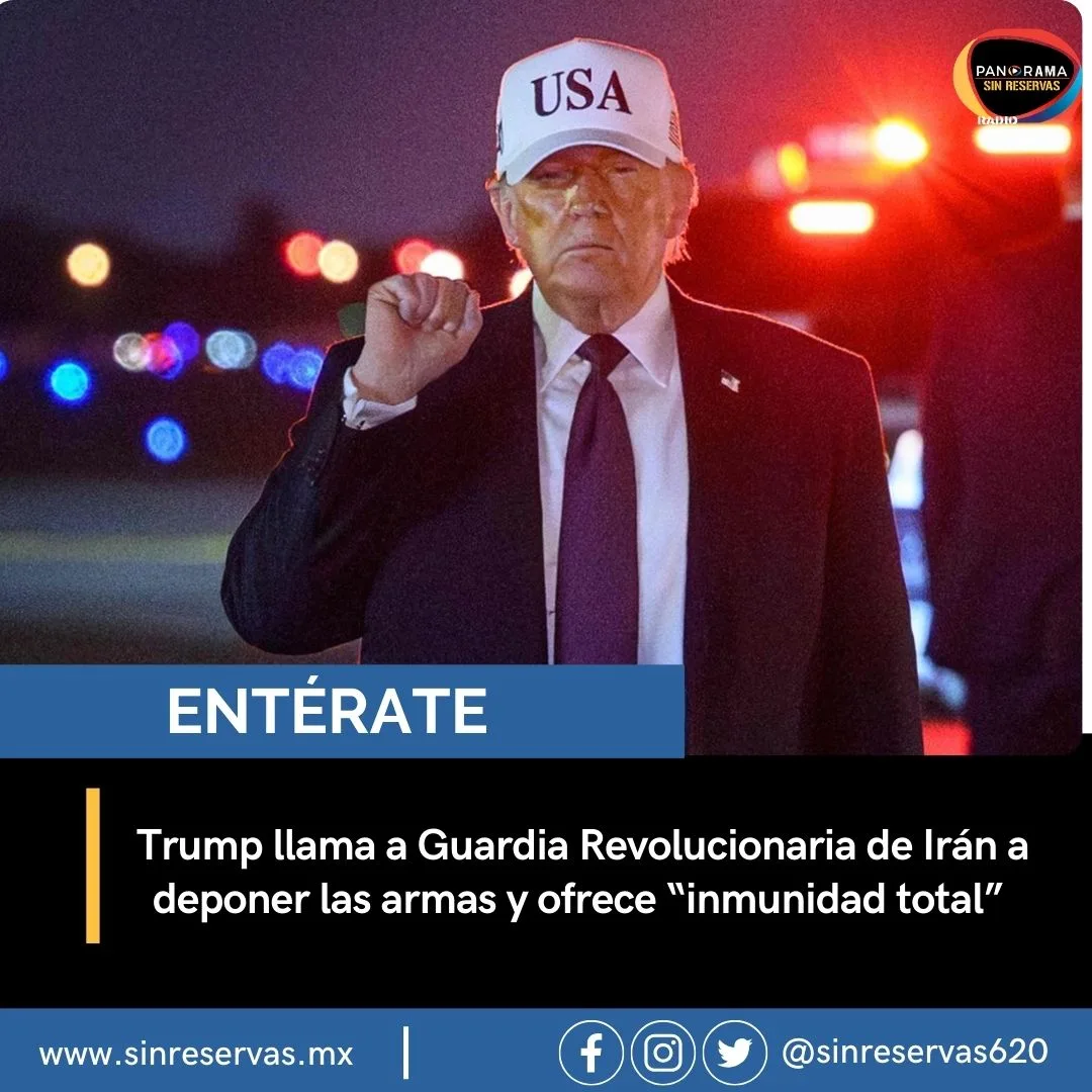 Durante un mensaje transmitido la madrugada de hoy, el presidente de Estados Unidos, Donald Trump, lanzó un llamado directo a la Guardia Revolucionaria Islámica para que deponga las armas a cambio de lo que describió como “inmunidad total”.